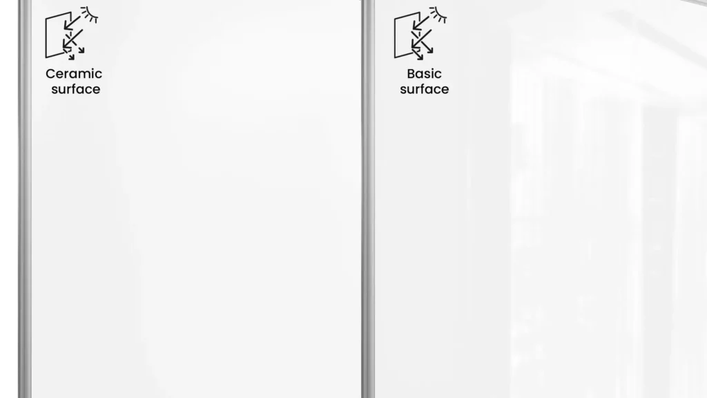 Die Oberfläche ist leicht matt, sie reflektiert kein Licht, was das Whiteboard perfekt als Projektionsfläche macht.