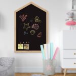 • Magnetische Kreideoberfläche – eine hausförmige Magnettafel verfügt über eine Oberfläche, auf der Sie mit Kreide und Kreidemarkern schreiben und mit klassischen und Neodym-Magneten Notizen anbringen können.