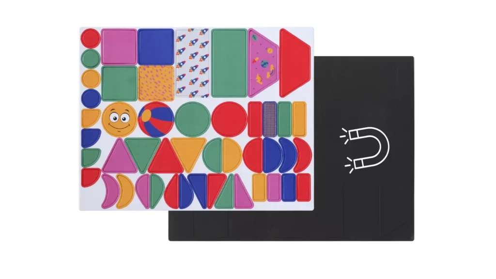 - Magnetisch – das Lernset besteht aus 48 magnetischen Elementen, die sowohl am Kühlschrank als auch an Magnettafeln befestigt werden können.