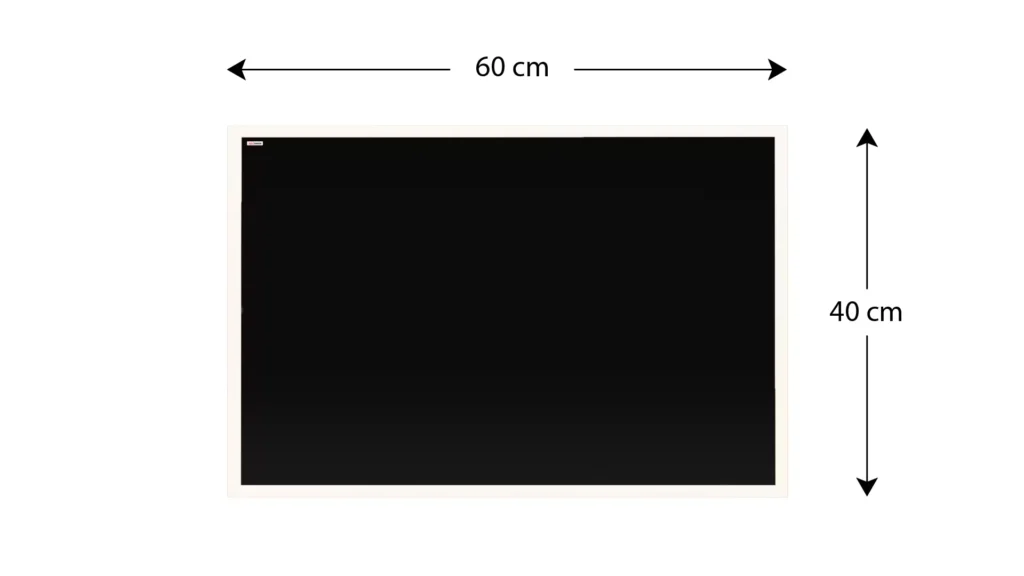 Der leichte Rahmen aus natürlichem Kiefernholz wurde zur zusätzlichen Festigkeit durch Tackerklammern auf der Rückseite verstärkt. Die Tafel kann je nach Bedarf vertikal oder horizontal befestigt werden. Im Set sind Montagehaken für die einfache Anbringung enthalten.