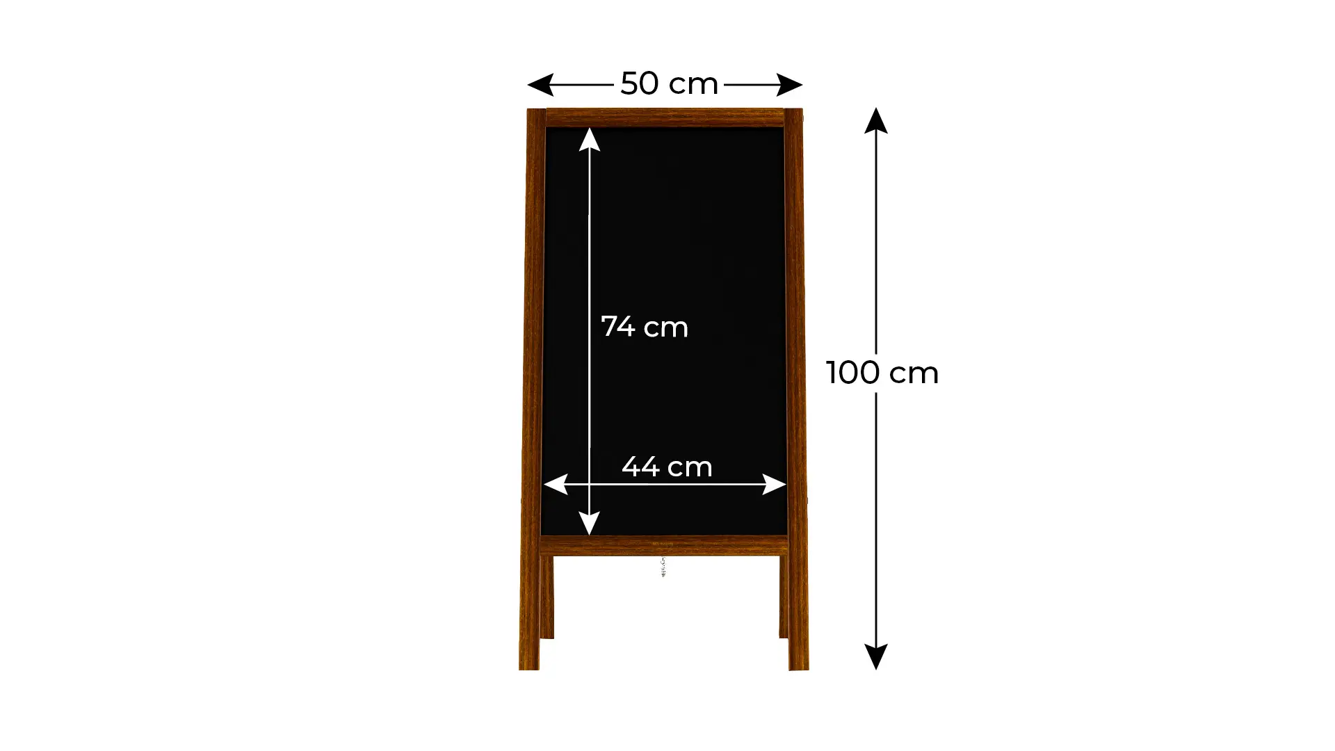 - ABMESSUNGEN– Gesamthöhe 100cm, Gesamtbreite 49,5cm, Kreidefläche 74x43cm, Rahmenbreite 3,5cm, Rahmendicke 2cm, Füße 27cm