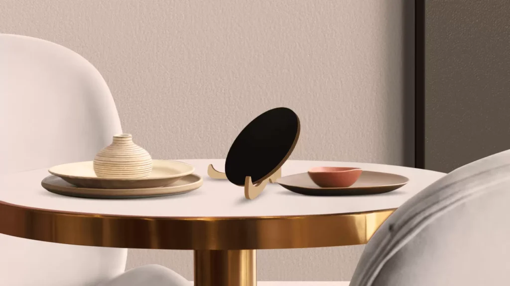 Das Herzstück der Tafel ist der lackierte Holzständer. Er zieht die Aufmerksamkeit des Kunden auf sich und gewährleistet eine lange Nutzungsdauer, ohne dass die ästhetischen Qualitäten verloren gehen.