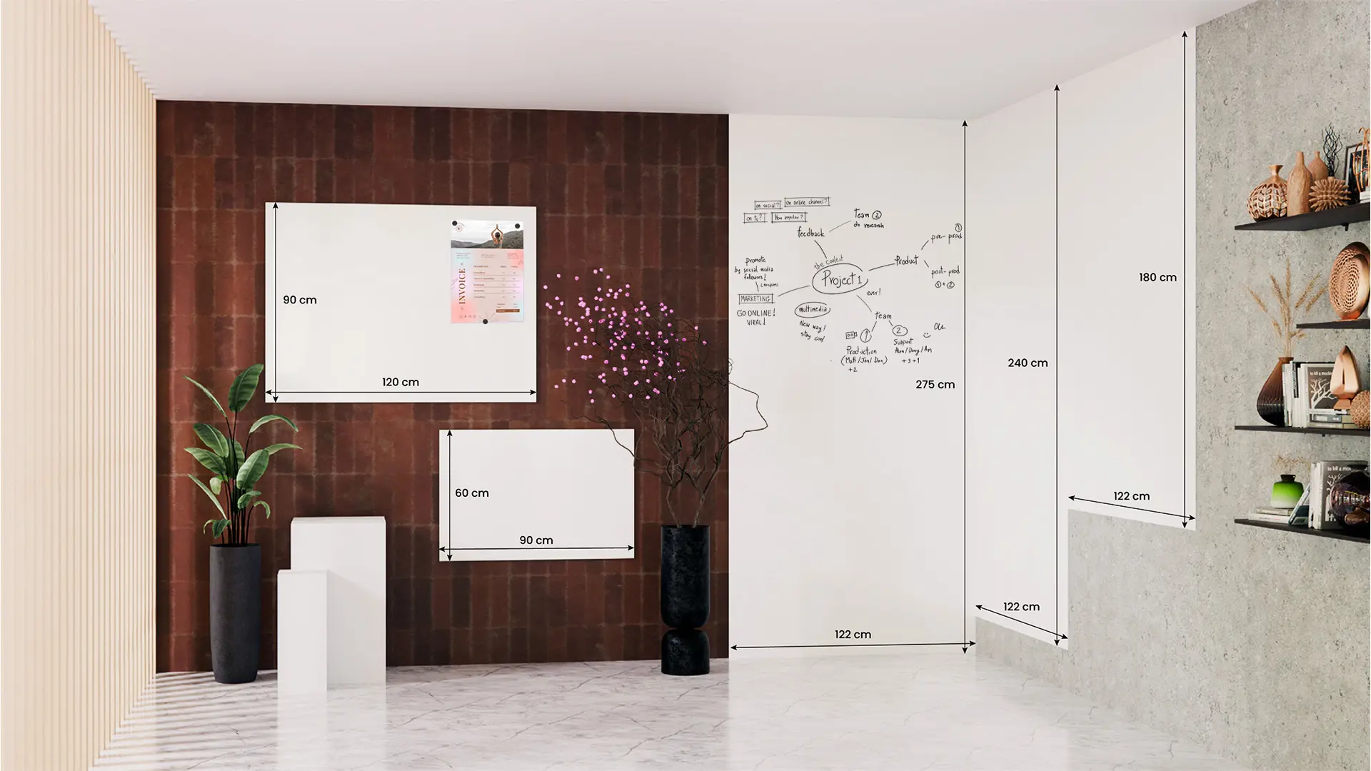 - MODERNES DESIGN - das rahmenlose Whiteboard SLIMboard bietet einen eleganten, modernen Look, der zu einer Vielzahl von Innenräumen passt. Es fungiert sowohl als praktische Schreibfläche als auch als stilvolles Dekorationselement. Sie können es nahtlos mit anderen SLIMboard-Tafeln kombinieren, um größere, modulare Arbeitsbereiche zu schaffen.