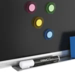 Die beschreibbare, kratzfeste Tafeloberfläche wurde aus schwarz lackierter und hochdichter HDF-Faserplatte hergestellt. Diese wurde außerdem kontinuierlich mit Lack beschichtet, der somit den richtigen Kontrast herstellt und dadurch verhindert, dass der Kreidestaub in die Oberfläche eindringt. Kreidemarker lassen sich ebenfalls problemlos mit einem angefeuchteten Tuch oder einem Schwamm abwischen. Die Tafeloberfläche ist kratzfest und eignet sich sehr gut zum Beschriften mit Kreide oder Kreidemarkern. Mit Magneten können dagegen sämtliche Zettel und andere wichtige Unterlagen an der Tafel befestigt werden.