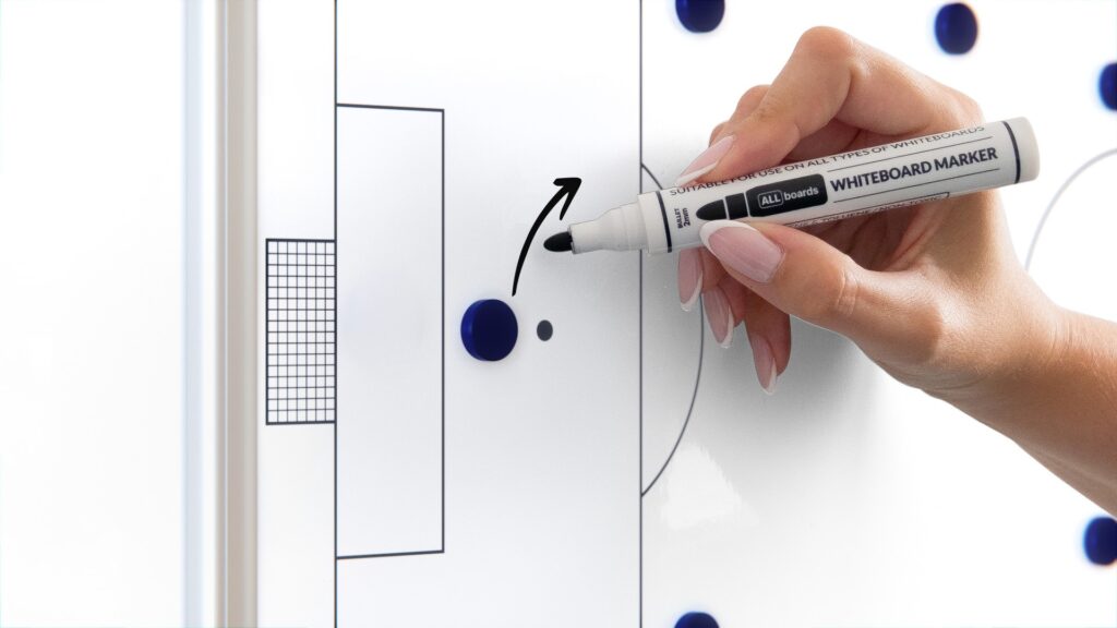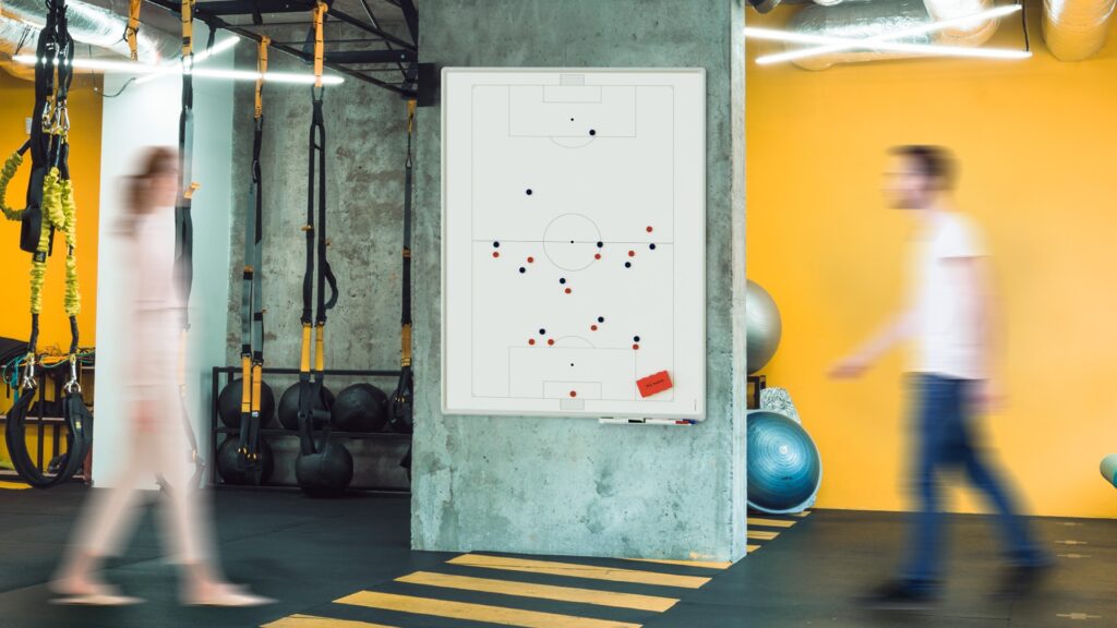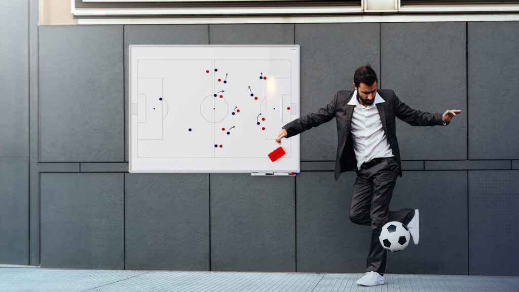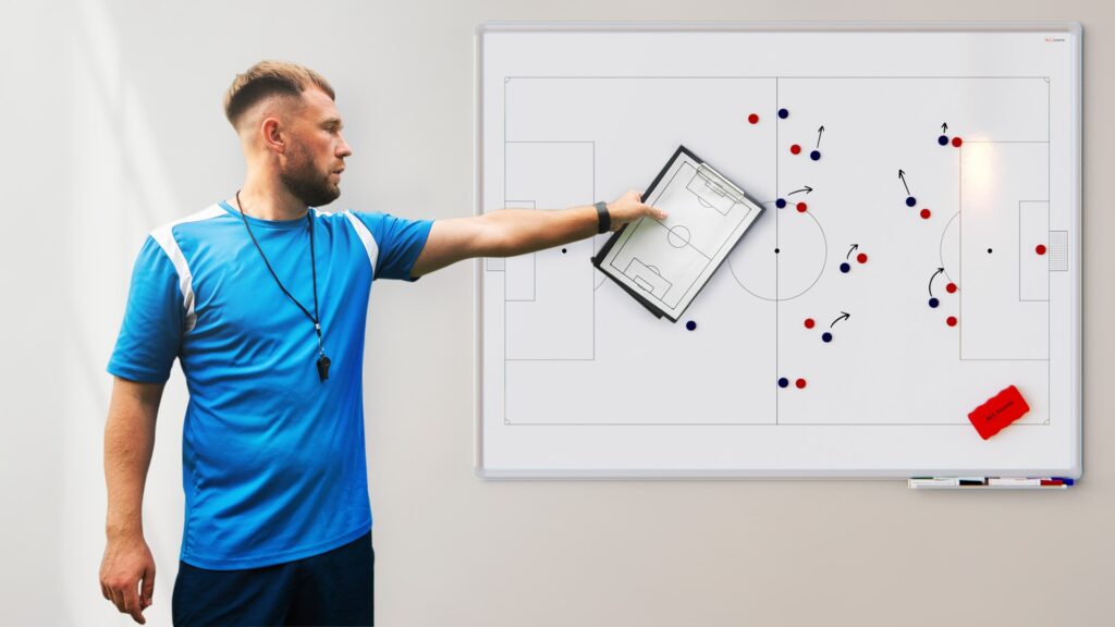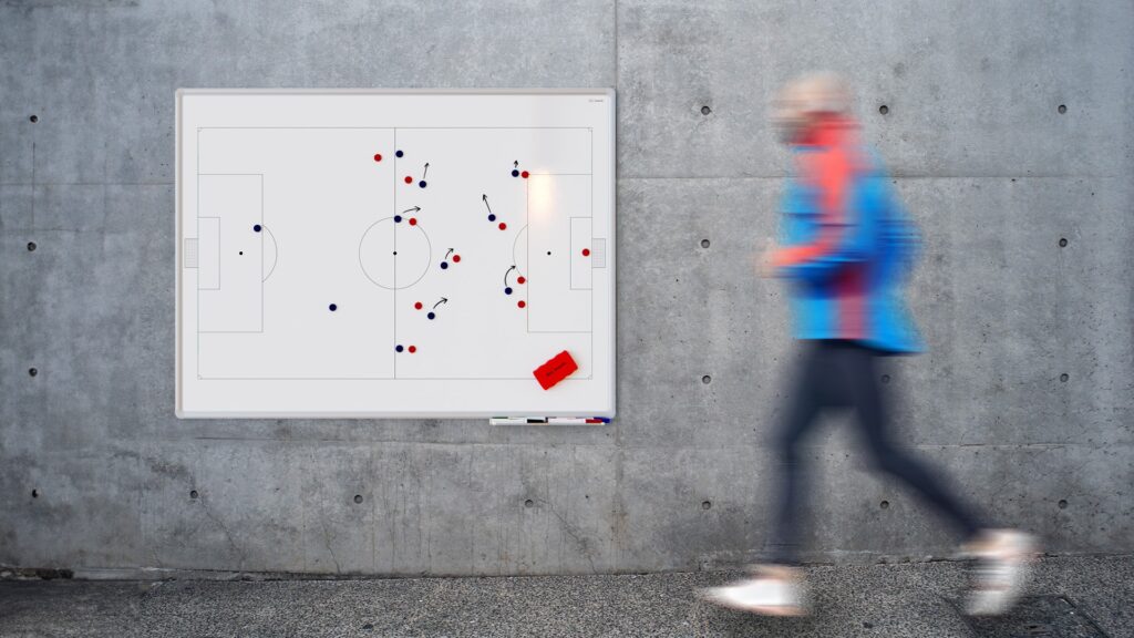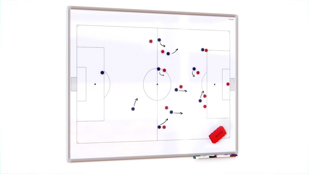 Taktiktafel FUSSBALL, 120×90 cm, weiße magnetische Trainingstafel