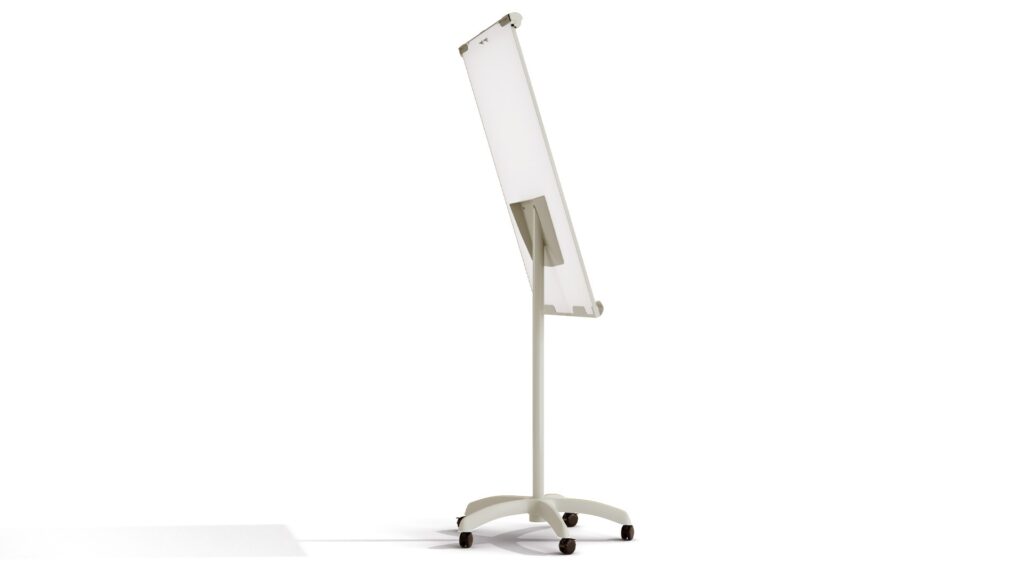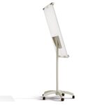 Das Flipchart steht auf einem soliden Rundfuß mit feststellbaren Laufrollen und ist äußerst einfach und flexibel sowohl zwischen mehreren Räumen als auch innerhalb eines Raumes positionierbar.