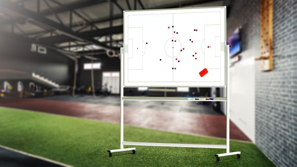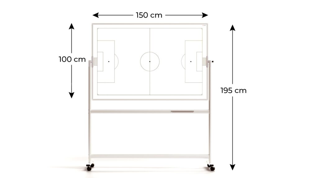 Taktische Tafel FUSSBALL, mobil, doppelseitig, drehbar, trocken abwischbar, magnetisch, 150x100 cm
