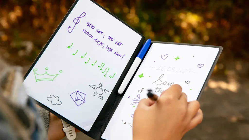 Dieses minimalistische und dennoch funktionale Notizbuch mit Whiteboard-Oberfläche ist eine tolle Alternative zu herkömmlichen Notizbüchern. Es eignet sich perfekt für schnelle Notizen, To-do-Listen, die Tagesplanung oder zum Lernen. Dank seiner eleganten Oberfläche ist es auch eine einzigartige Geschenkidee – praktisch, stilvoll und umweltfreundlich.